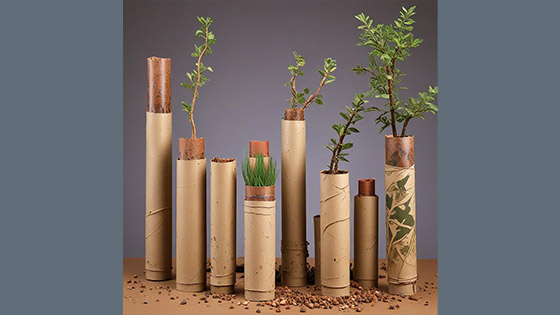 イベントを盛り上げてくれる紙製吹上げ花火のカートリッジを環境に配慮した再生紙でつくり、植物の種子を埋め込むことで、廃棄物の削減と植林を促すアイデア。