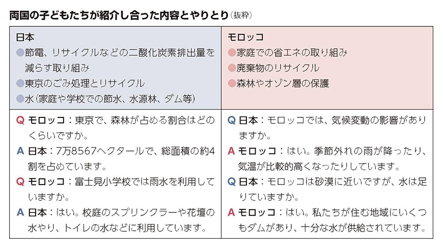 本プログラムは、昨年7月、富士見小に駐日モロッコ大使館のズバイダ・クレイマ文化参事官を招き、モロッコについて学ぶ特別授業からスタートしました。